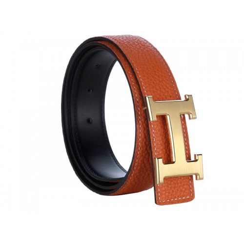 Curea lată din piele Hermes Togo cu cataramă H aurie, model cărămidă