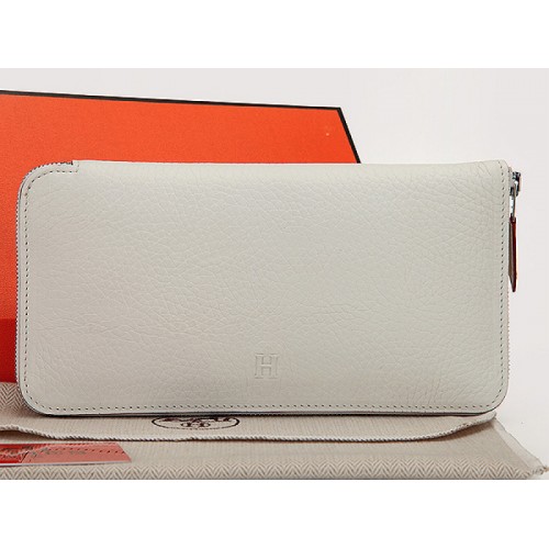 Portofel Hermes cu fermoar, piele originală, alb pepene verde