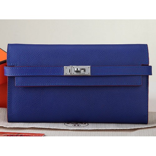 Portofel lung Hermes Epsom Original Calfskin Kelly, albastru electric