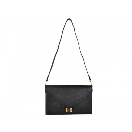 Geantă Hermes Pilot Envelope Clutch Neagră cu Hardware Auriu