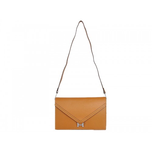 Geantă Hermes Pilot Envelope Clutch Camel cu accesorii argintii