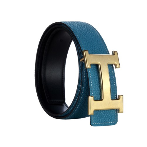 Curea din piele Hermes Togo cu cataramă H aurie, albastră/neagră