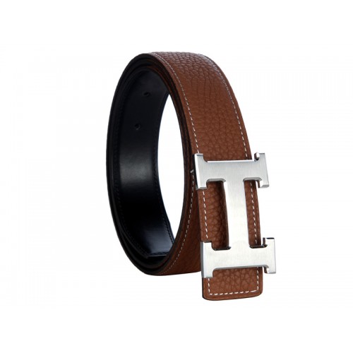 Curea din piele Hermes Togo cu cataramă H argintie maro