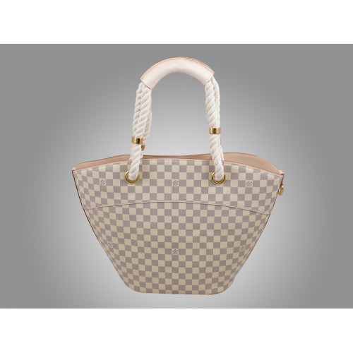 -Pânză Damier Azur, căptușeală textilă și ornamente din piele naturală de vacă
