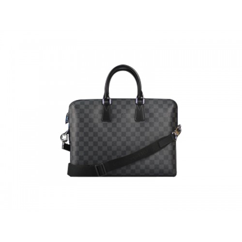 Călătoria Porte-Documents în arestarea pânzei Damier Graphite este o versiune mai compactă și mai casual a Călătoriei Porte-Documents. Cu toate acestea, poartă cu ușurință un 15” laptop în stil fin.