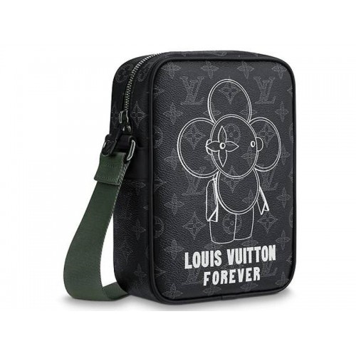 Acest PM compact al Dunării realizat din pânză Monogram Eclipse prezintă o nouă versiune a lui Vivienne, mascota Louis Vuitton, desenată de Kim Jones în mod expres pentru Men’s 2018 Fall Precollection. O geantă elegantă de oraș, accentuată cu feronerie neagră și verde, Dunărea este echipată cu o curea textilă reglabilă pentru transportul umărului sau al corpului transversal.