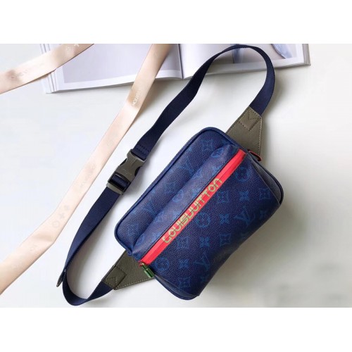 Culorile insulare și o dispoziție sportivă în aer liber se îmbină în acest bumbag, realizat din pânză Monogram suplă accentuată cu ornamente textile și piele. Fitingurile metalice aduc o notă jucăușă acestei piese funcționale, o modalitate elegantă de a depozita elementele esențiale, fără mâini.