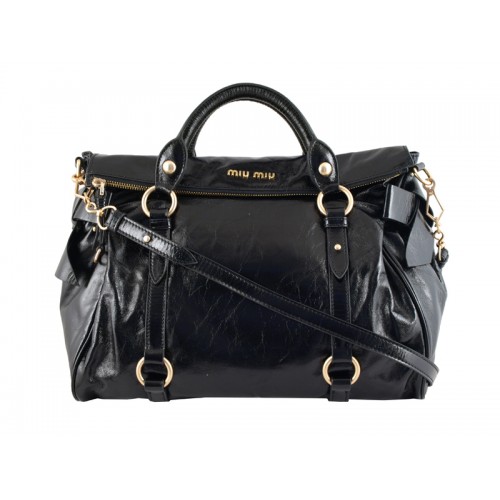 Geantă Boston mare din piele strălucitoare Miu Miu neagră