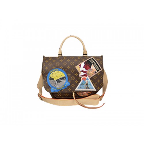 -Monogram Canvas, mânere din piele de vacă, ornamente & amp; închidere cu panglică.9 patch-uri brodate, bazate pe munca artistului, Buzunar central plus 2 buzunare interioare, clapă magnetizată, căptușeală din microfibră, feronerie din alamă argintie.