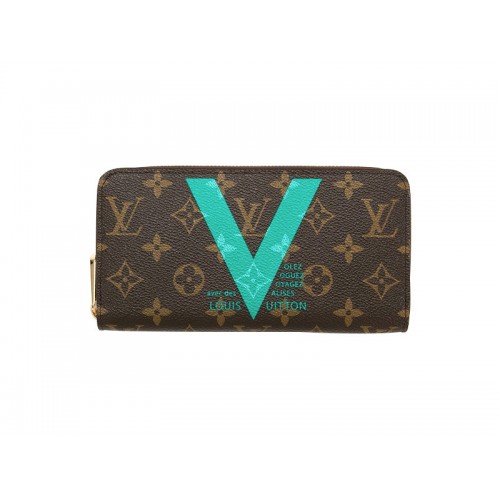motiv V îndrăzneț inspirat de o reclamă Louis Vuitton din anii 1920 împodobește portofelul clasic Zippy în pânză Monogram. Cu interior generos și feronerie subtilă din alamă aurie, este subestimat în timp ce elegant.