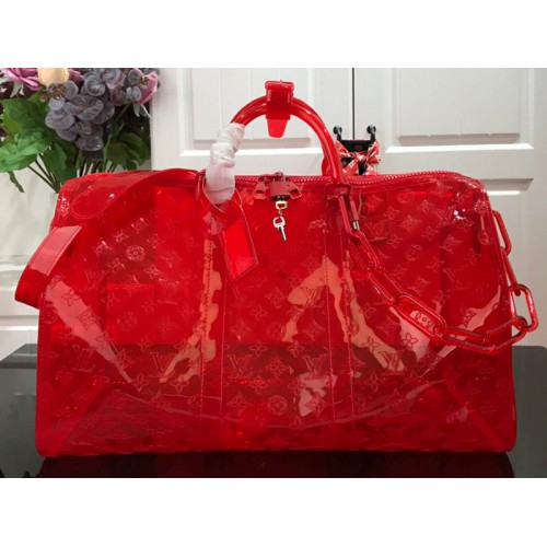 • Louis Vuitton Geantă tip bandoulière din PVC cu monogramă în relief, 50 roșie m53274