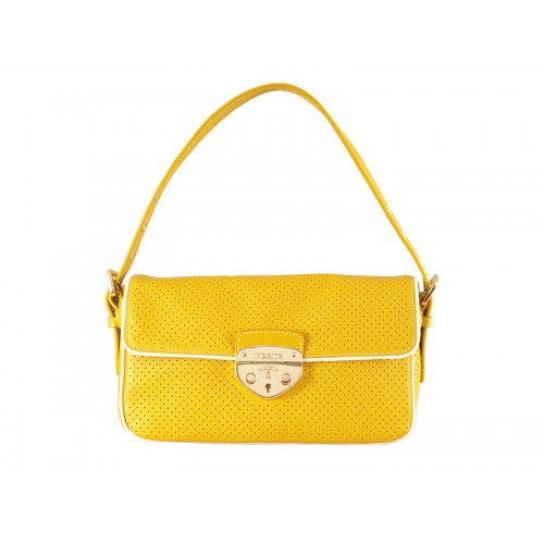 Geantă de umăr din piele de vacă Prada Perforate Collection, galbenă