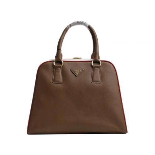 Geantă Prada Saffiano cu mâner superior înrămată, culoare cafea
