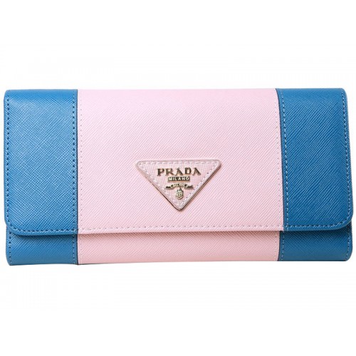 Portofel Prada Saffiano din piele triplă, albastru cu roz