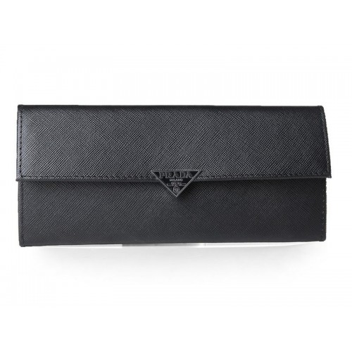 Portofel Prada Saffiano din piele de vițel cu două pliuri, negru