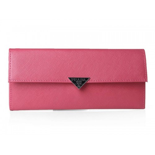 Portofel Prada Saffiano din piele de vițel cu două pliuri, Rosy