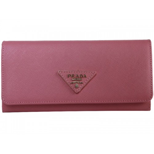 Portofel Prada din piele Saffiano cu logo triunghiular roz