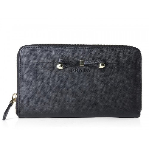 Portofel Prada Saffiano cu fermoar și fundă, negru
