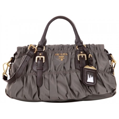 Geantă Prada Tessuto Gaufre din nailon cu mâner superior gri închis