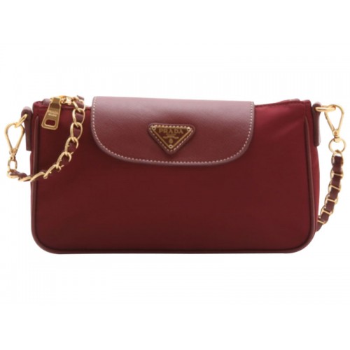 Geantă de mână Prada Tessuto Nylon cu piele Saffiano, culoare vișinie