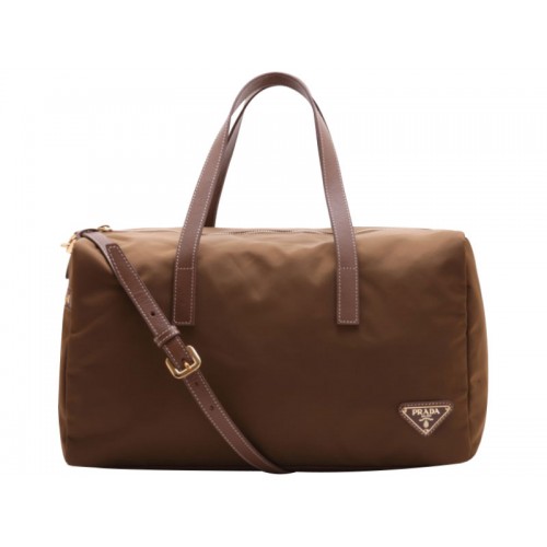 Geantă Prada Vela din nailon cu mâner superior, maro