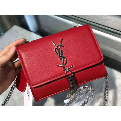 Portofel Saint Laurent Kate cu lanț din piele de vițel roșu