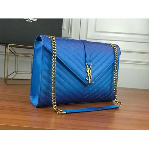 • Geantă Saint Laurent YSL Monogram din piele matelassé albastră