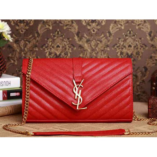 Geantă medie YSL cu monogramă, piele texturată matlasată, cu aspect de pudră și granulație roșie