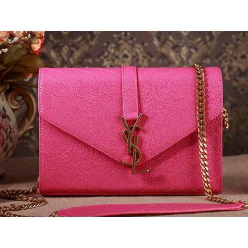 Geantă mică YSL Monogramme Satchel Lipstick Fuchsia din piele texturată Matelasse
