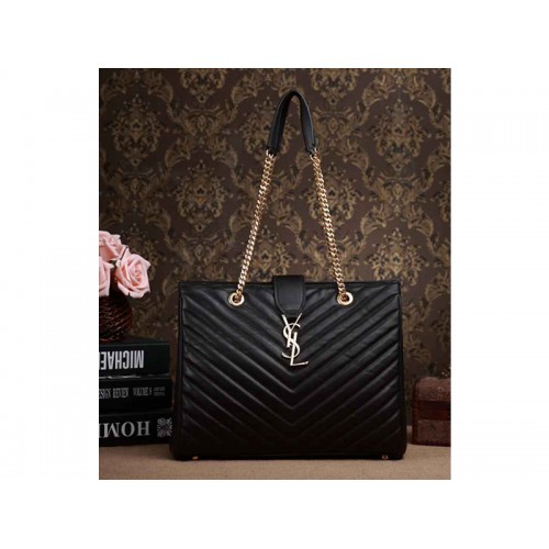 CLASSIC SAINT LAURENT SHOPPER TOTE CU LANȚ METALIC, MÂNERE DUBLE DIN PIELE ȘI ÎNCHIDERE CU CATARAMĂ SEMNĂTURĂ YSL INTERBLOCARE.
