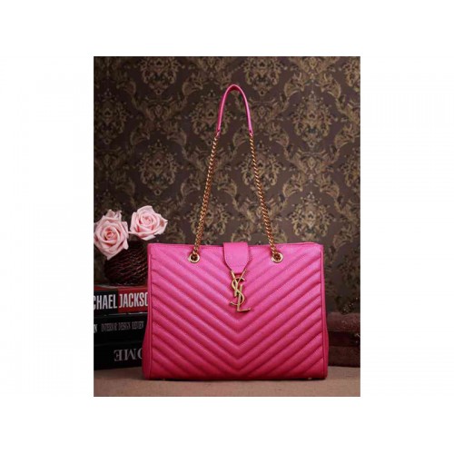Geantă de cumpărături Yves Saint Laurent clasică cu monogramă, din piele texturată matlasată Grain de Poudre, culoare ruj fuchsia
