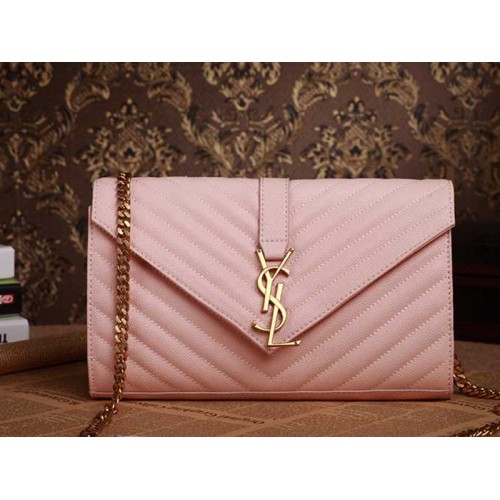 Geantă medie YSL cu monogramă, piele texturată matlasată, roz, pudră, cu aspect de pudră
